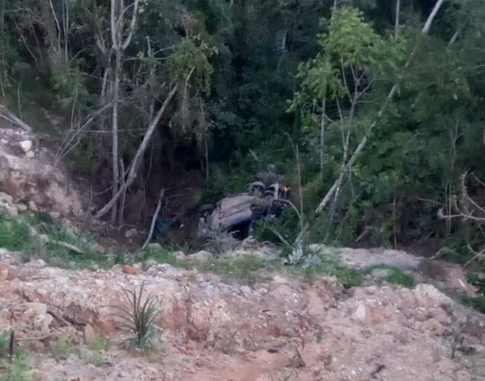 O Corpo de Bombeiros foi acionado e encontrou o motorista ainda no interior do veículo, na parte traseira, em encarceramento mecânico, apresentando escoriações generalizadas, sem outras lesões maiores.