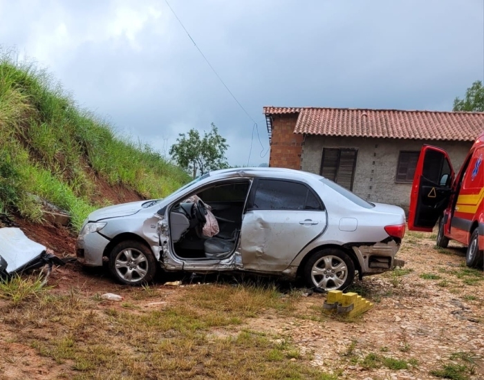 Os bombeiros foram acionados e encontraram a vítima encarcerada com ferimentos, dores e suspeita de fratura fechada nos arcos costais, com suspeita também de hemorragia interna.