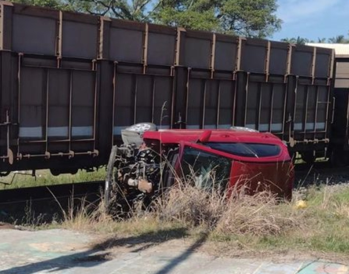 Uma motorista, de 35 anos, sofreu ferimentos após uma colisão contra trem nesta sexta-feira, dia 23. O acidente ocorreu na SC-445, no bairro Esplanada, em Içara. A Polícia Militar foi acionada e encontro o veículo Ford Ka com a frente destruída, tombado ao lado do trilho.