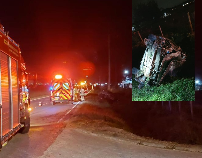 Bombeiros Voluntários/Divulgação/Folha Regional Um acidente de trânsito foi registrado neste sábado, dia 30, na BR-101, em Sangão. Trata-se de um capotamento do veículo HRV Honda, com placas de Porto Alegre.
