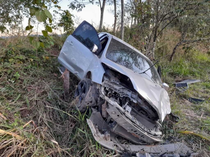 Segundo informações do Corpo de Bombeiros, o condutor do veículo Ford Focus perdeu o controle da direção, quando saiu da pista e colidiu o veículo contra um barranco.