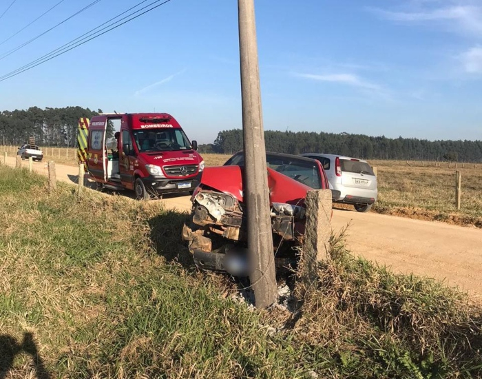 Ele conduzia um veículo Ford/Fiesta pela Estrada Geral do bairro Arroio da Cruz, quando colidiu frontalmente contra um poste.