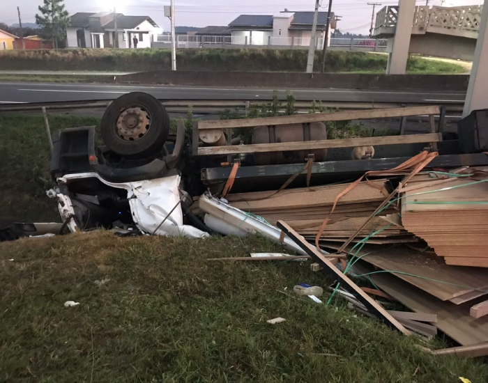 Por volta das 4h25, o Corpo de Bombeiros foi acionado para atender a ocorrência, tratando-se de um veículo de grande porte (caminhão Constelation) capotado no canteiro central da rodovia.