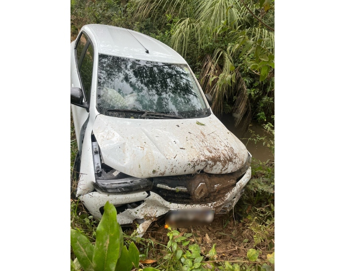 A guarnição dos Bombeiros Voluntários foi acionada e constatou que tratava-se de uma saída de pista. O condutor, um idoso de 81 anos, relatou que estava dirigindo, quando sentiu-se mal, perdeu a consciência, saiu da pista e colidiu seu veículo Kwid contra um barranco.