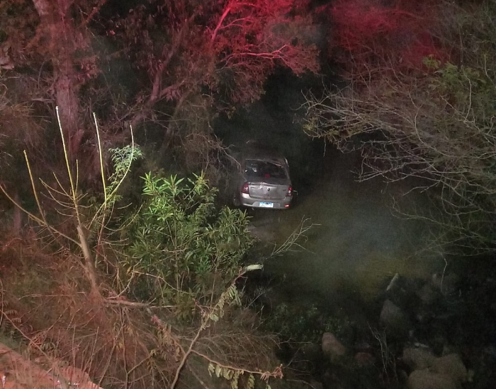 Por volta das 3h20, o Corpo de Bombeiros de Morro da Fumaça foi acionado e encontrou o veículo Renault Logan prata, caído às margens de um rio, em uma ribanceira de aproximadamente sete metros de distância e quatro metros de altura em relação à via pública.