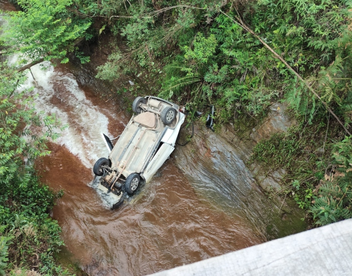 Um homem sofreu fratura de clavícula, politraumatismo e outros ferimentos após capotar seu veículo e cair de uma ponte de cerca de 30 metros. O acidente ocorreu nesta quinta-feira, dia 7, no bairro Santana, em Lauro Müller. Policiais do Saer e equipe de Saúde do Sarasul foram acionados pelo Corpo de Bombeiros para auxiliar na ocorrência.