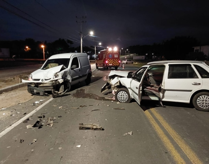 Uma colisão frontal entre dois automóveis foi registrada no início da noite deste sábado, dia 26, na SC-443, no bairro Linha Anta, em Içara.