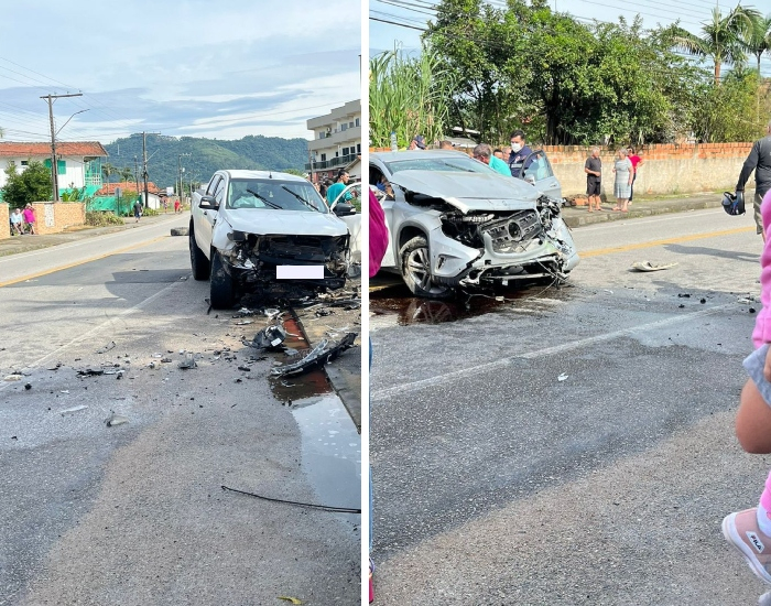 A Polícia Militar Rodoviária Estadual (PMRv) foi acionada no local onde se deparou com uma colisão frontal entre o automóvel M. Benz, com placas de Tubarão e uma caminhonete I/Ford Ranger, com placas de Tubarão.
