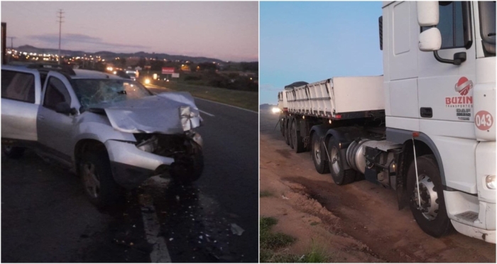Uma colisão entre uma carreta e um veículo Renault Duster deixou quatro pessoas feridas nesta sexta-feira, dia 5. O acidente ocorreu na BR-101, no Morro Grande, em Sangão.