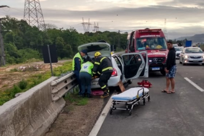 A vítima foi retirada do carro pelo Corpo de Bombeiros e encaminhada ao hospital