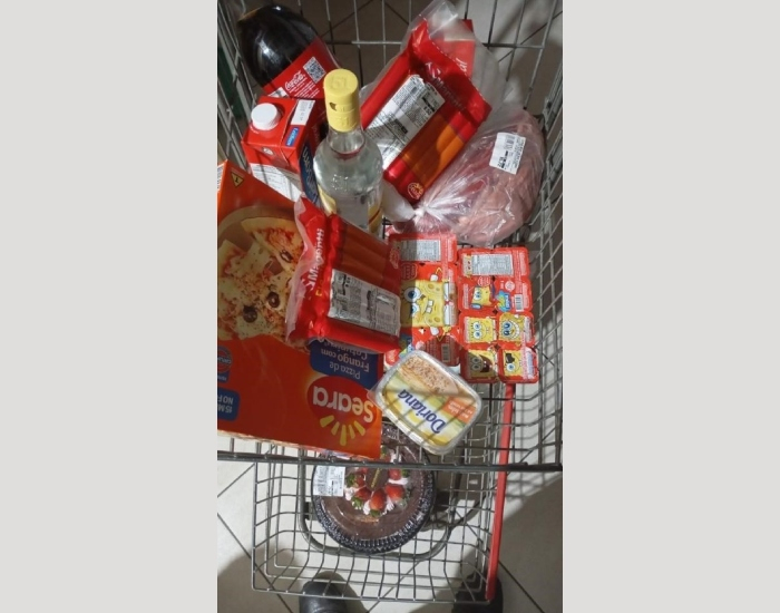 Uma mulher em atitude suspeita entrou no estabelecimento e começou a pegar alguns produtos como carne, bolachas, pizza, manteiga, uma caixa de cerveja em lata e um litro de cachaça.
