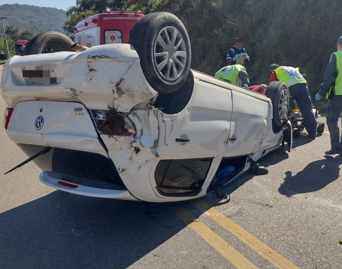 A vítima foi encontrada pelo Corpo de Bombeiros fora do veículo com ferimentos e encaminhada ao hospital