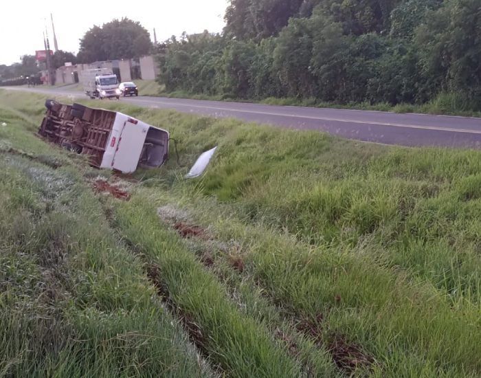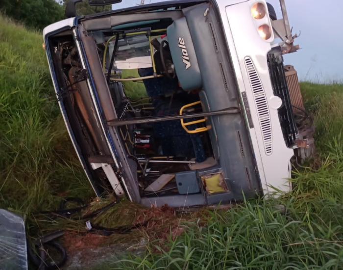 De acordo com informações do Corpo de Bombeiros, um ônibus que transportava 14 trabalhadores de uma empresa de Tubarão a Capivari de Baixo saiu da pista e sofreu um tombamento lateral próximo ao motel Champagne.