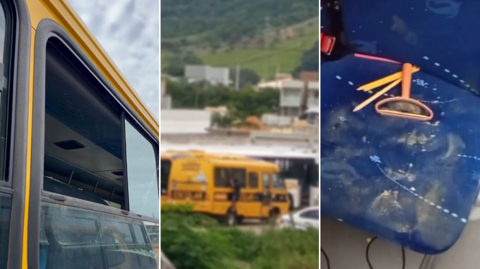 Fotos: Reprodução Um episódio de vandalismo por pouco não afetou o deslocamento de estudantes para as aulas em Garopaba nesta semana. Ônibus do transporte escolar e universitário foram depredados durante o fim de semana.