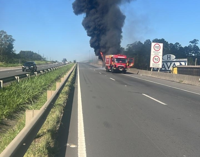 Um ônibus de turismo pegou fogo na manhã desta terça-feira, dia 11, interditando o trânsito na BR-101 sentido sul em Criciúma. O Corpo de Bombeiros foi acionado e faz o combate às chamas no local. Segundo os bombeiros, no veículo estava apenas o motorista, que saiu ileso antes do fogo se propagar, sem vítimas.