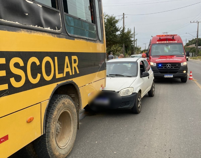 Uma colisão entre um ônibus escolar e um automóvel Celta foi registrada nesta terça-feira, dia 20. O acidente ocorreu na SC-100, no bairro Garopaba, em Jaguaruna.