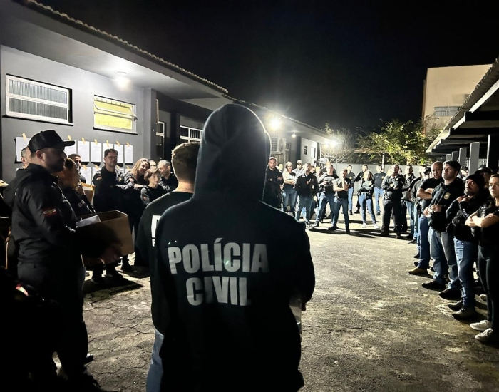 Cerca de 100 policiais civis participaram da operação nesta terça-feira, dia 20, sendo recebido apoio da DEIC, CECOR, 1°DECOR, 2°DECOR, 3°DECOR, 4°DECOR, DECOR/DEIC, Lab/LD da Polícia Civil, DLAV, DRAS, DECAP, DFRV, DRCI, DD, DRRDI, DEDIR, DRP de Tubarão, DRP de Laguna, DRP de Criciúma, DEIC da Polícia Civil do Rio Grande do Sul, bem como a Polícia Científica do Estado de Santa Catarina através dos setores de informática forense e engenharia forense.