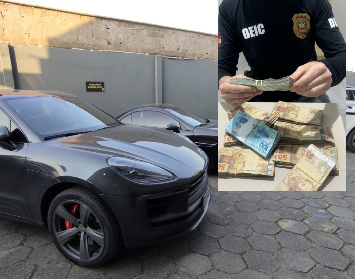 A polícia localizou R$ 55 mil em espécie e documentos na casa de um empresário de Criciúma suspeito de estelionato, falsidade ideológica e lavagem de dinheiro. Carros e relógios de luxo foram apreendidos