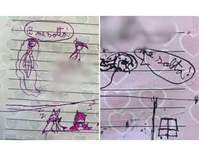 De acordo com a delegada que investiga o caso, Tereza Nabarro, um diário da criança também foi analisado. Nele, foram encontrados diversos desenhos em que a garota revelava os abusos sexuais que sofria. Os desenhos são acompanhados de balões de fala com frases como “Me solta”, perto de pessoas dormindo.