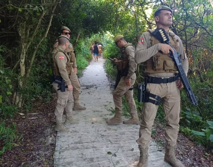 PMSC/Divulgação/Folha Regional Policiais do 34º Batalhão de Polícia Militar (BPM) realizaram, nesta sexta-feira, dia 2, mais uma operação na Praia do Rosa, em Imbituba, para coibir a perturbação do sossego e garantir a tranquilidade de moradores, trabalhadores e visitantes.