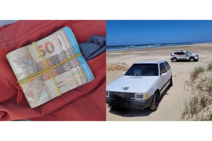 O carro e o dinheiro foram localizados pelos policiais em um balneário na manhã desta sexta-feira