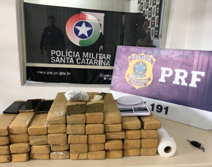 Policiais rodoviários federais e policiais militares apreenderam em Tubarão cerca de 37,8 quilos de maconha. Um homem foi preso nesta quinta-feira, dia 13.