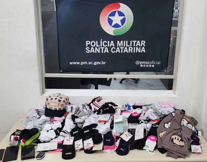 No veículo, havia quatro ocupantes (dois homens e duas mulheres). No porta-malas, estavam todos os produtos furtados (bolsas, sapatilhas, tênis, meias e roupas, avaliados em R$ 5.705,00.