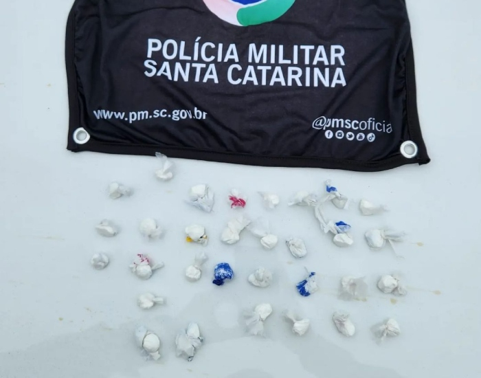 Após a abordagem, a guarnição já estava em troca de informações com a Polícia Civil que confirmou que o suspeito já estava traficando em Jaguaruna. Foi apreendido com ele uma porção de maconha e dentro do calção, 31 petecas de cocaína.