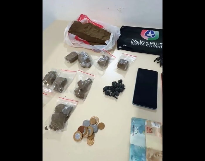 PMSC/Divulgação/Folha Regional A Polícia Militar prendeu três pessoas envolvidas com o tráfico de drogas na modalidade “tele-entrega” em Tubarão. Durante a ação, foram apreendidas porções de maconha e cocaína, além de veículos e materiais utilizados no crime.