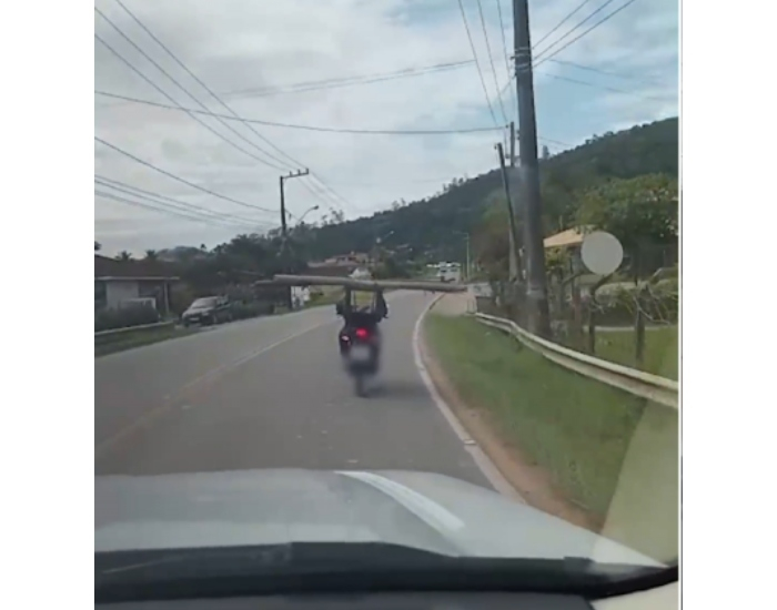 A Polícia Militar Rodoviária (PMRv) compartilhou um vídeo inusitado em suas redes sociais. As imagens mostram um homem que transportava um tronco de árvore em cima de sua motocicleta.