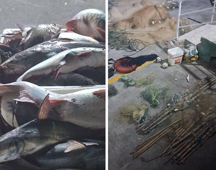 Durante a fiscalização foram localizadas quatro redes de emalhe de fora a fora no Rio Tubarão, sendo apreendidos quase 100 quilos de bagre branco, espécie protegida por lei, que foram doados a entidade filantrópica de Laguna.