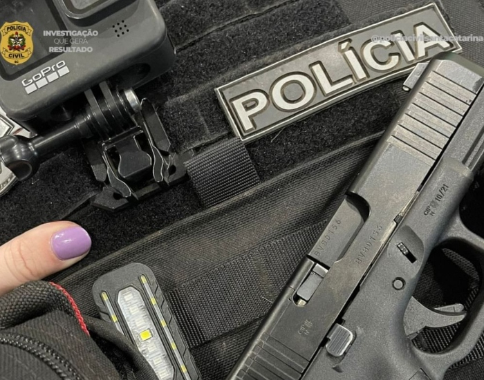 Policiais Civis da Delegacia da Comarca de Jaguaruna apreenderam pistolas e munições em uma residência. A ação ocorreu em cumprimento a mandado de busca e eventual apreensão expedido pelo Juízo Criminal da Comarca de Jaguaruna, decorrente de requerimento de medidas protetivas de urgência contra o suspeito.