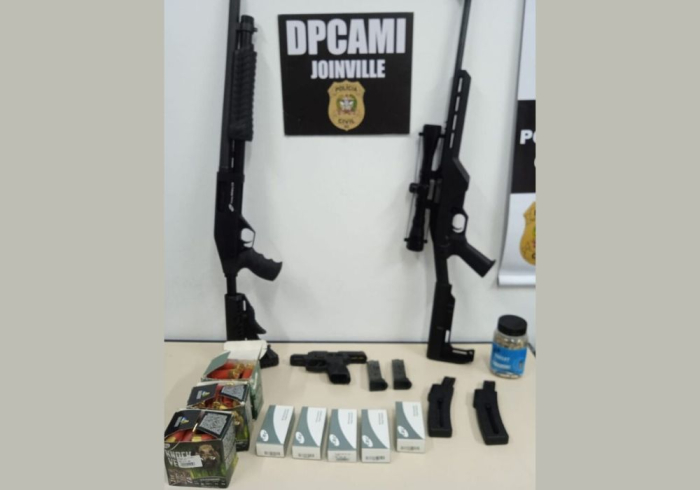 Polícia Civil apreende três armas de fogo e 663 munições em Santa Catarina - Foto: PCSC A Polícia Civil de Santa Catarina, por meio da Delegacia de Proteção à Criança, Adolescente, Mulher e Idoso (DPCAMI) de Joinville, cumpriu, na manhã desta terça-feira (15/10), um mandado de busca e apreensão expedido pelo Juizado de Violência Doméstica e Familiar contra a Mulher. A ação ocorreu em uma residência do bairro Bom Retiro, contra um homem de 47 anos, após denúncias de violência doméstica e ameaças com armas de fogo contra sua ex-companheira.