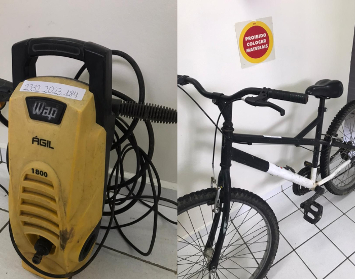 A bicicleta e o lava-jato estão disponíveis na delegacia para reconhecimento dos respectivos proprietários.