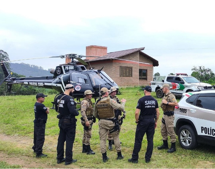 Os policiais civis ao tomarem conhecimento do crime se deslocaram ao local e estavam realizando buscas pelo suspeito, quando foram alertados por cidadãos de que o homem estava transitando em via pública. A equipes do Saer/Sul auxiliou nas buscas com o helicóptero. Em ato continuo, os agentes foram em busca do suspeito pela autoria do crime e efetuaram a prisão.