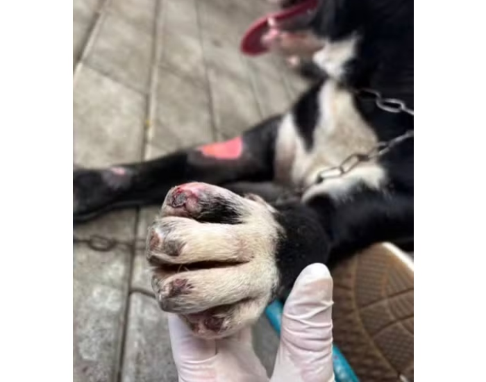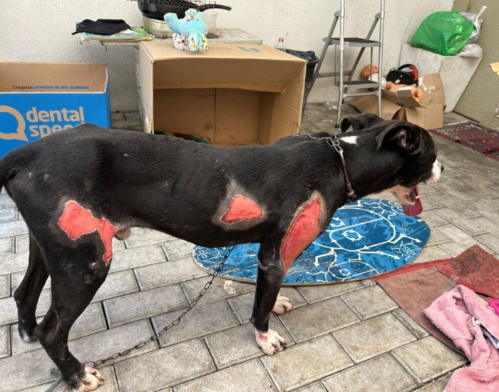 O cão foi encontrado junto ao tutor com feridas pelo corpo, além de unhas arrancadas e partes musculares expostas. Segundo a Polícia Civil, o homem admitiu que não levou o cachorro ao veterinário durante os 16 dias desde o ocorrido, passando somente óleo de girassol nos ferimentos.