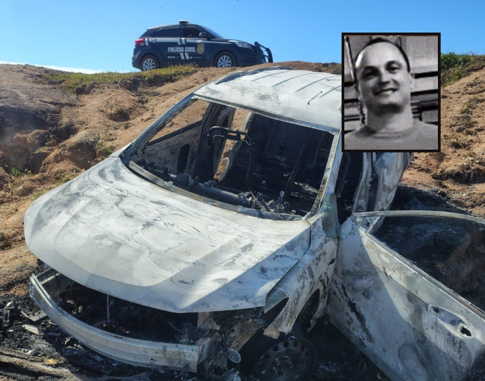 Corpo da vítima, de 47 anos, foi encontrado totalmente carbonizado no banco traseiro de um carro em chamas, na região da Pedra do Frade