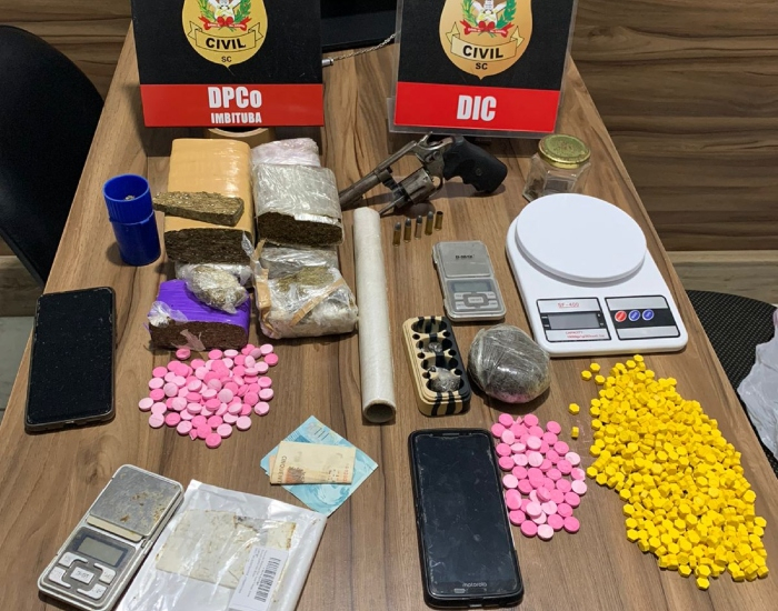 Após investigação, nesta manhã, policiais civis da DICs de Tubarão e Laguna e da DPCo de Imbituba deram cumprimento ao mandado, que resultou na prisão em flagrante de dois homens e na apreensão de um resolver calibre .32, quatro munições do mesmo calibre, e quantidade significativa de entorpecentes, incluindo-se ecstasy, maconha e haxixe.