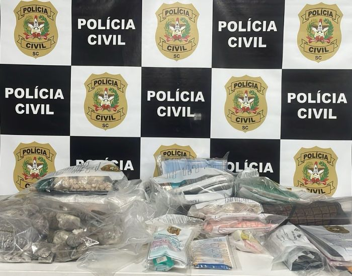Polícia Civil prende três assaltantes e apreende grande quantidade de drogas em Santa Catarina - Foto: PCSC A Polícia Civil de Santa Catarina deflagrou, na manhã desta sexta-feira (24), a Operação “Quirodáctilo”, que resultou na prisão de três assaltantes e na apreensão de grande quantidade de drogas em Palhoça, na região da Grande Florianópolis. A ação buscou desarticular uma quadrilha especializada em roubos a joalherias.
