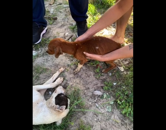 Dois cachorros foram encontrados subnutridos em ambiente inadequado na localidade de Itapirubá Sul