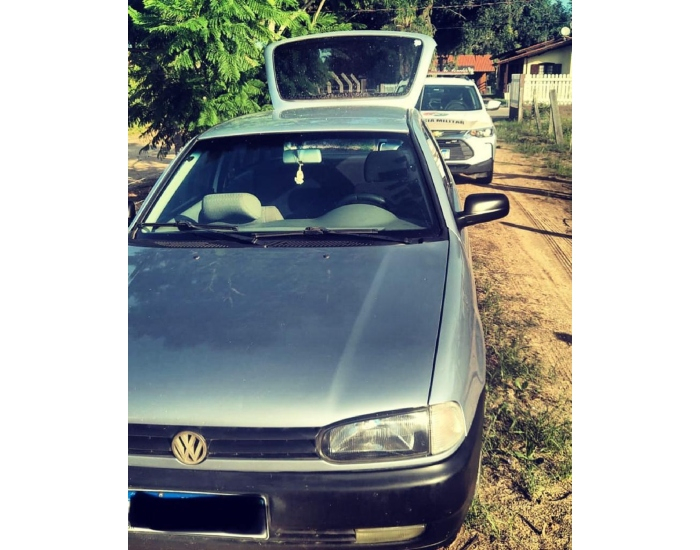 O veículo estava sem o estepe, aparelho de som e apresentava pequenas avarias. Diante dos fatos, foi realizado os procedimentos cabíveis.