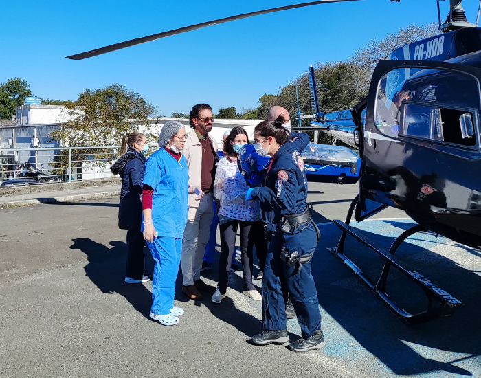 Na chegada do serviço aeromédico, o recém nascido foi intubado. Ele ainda teve uma parada cardiáca e teve que ser reanimado dentro da aeronave.