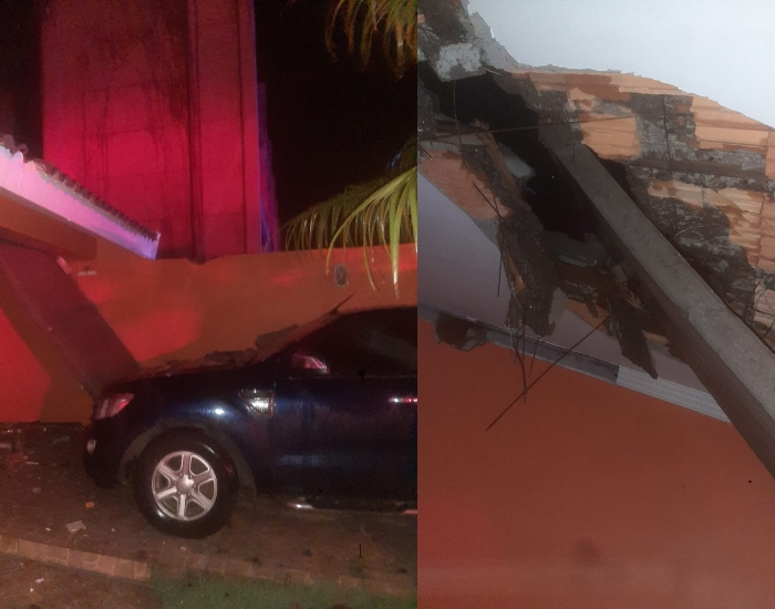 Um casal de idosos foi surpreendido ao ter sua residência destruído por um prédio em construção. Parte da estrutura do prédio desabou sobre a residência de alvenaria atingindo toda a estrutura e um veículo que estava na garagem que fica ao lado do prédio.