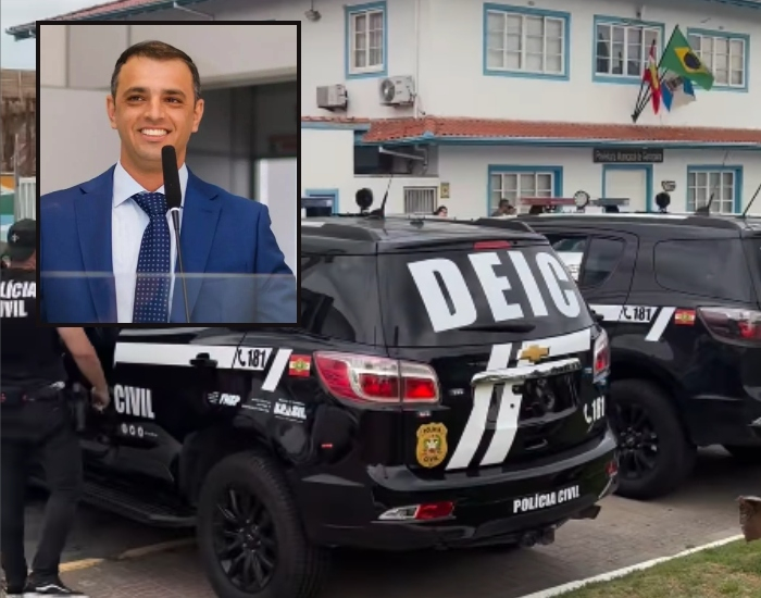 Divulgação/Folha Regional O prefeito de Garopaba, Júnior de Abreu Bento (Progressistas), e mais duas pessoas foram presos em uma operação deflagrada pela Polícia Civil de Santa Catarina, através da 2ª Delegacia de Combate à Corrupção da DEIC, nesta quinta-feira, dia 8.