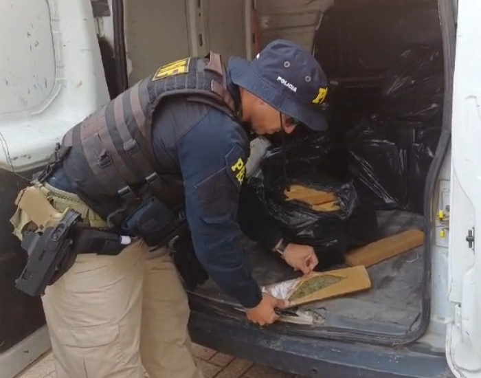 Policiais rodoviários federais apreenderam 250 quilos de maconha em um furgão que circulava com placas clonadas na BR-101, em Imbituba, nesta quinta-feira, dia 19.