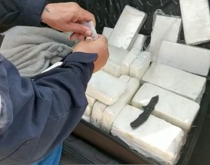 Quase 40 quilos de cocaína estavam escondidos dentro de uma mala. A droga renderia cerca de R$ 6,8 milhões ao crime organizado