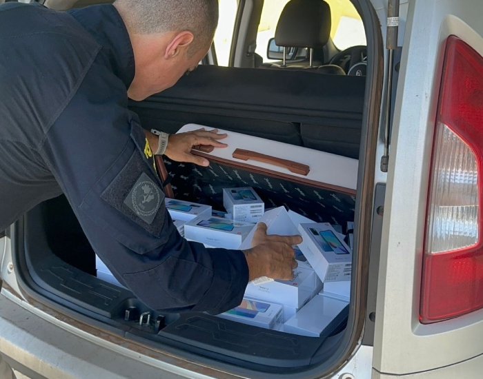 Policiais rodoviários federais apreenderam 105 smartphones importados do Paraguai em Biguaçu, na BR-101, nesta segunda-feira, dia 15.