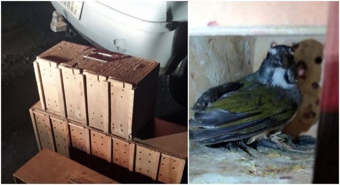 As aves, sendo 39 da espécie trinca-ferro e um azulão, estavam sendo transportadas no porta-malas de um automóvel com placas de Santo Amaro da Imperatriz com pouca circulação de ar, sem água e sem comida.