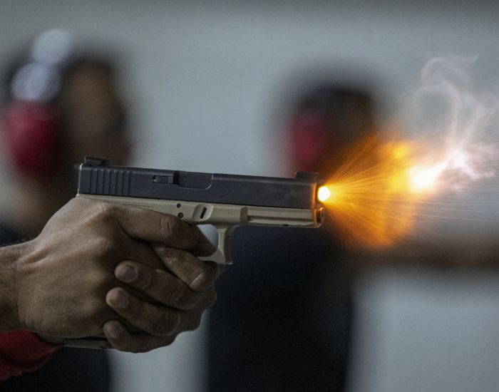 Ao chegarem ao local, os policiais flagraram quatro homens encapuzados manipulando veículos estacionados no pátio. Durante a abordagem, dois criminosos reagiram e avançaram contra a guarnição, sendo que um deles efetuou um disparo de arma de fogo contra os policiais.