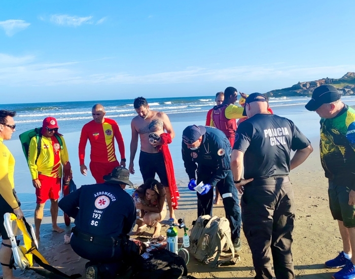 Equipe do Saer conduziu a vítima em afogamento grau 3 ao hospital de Tubarão
